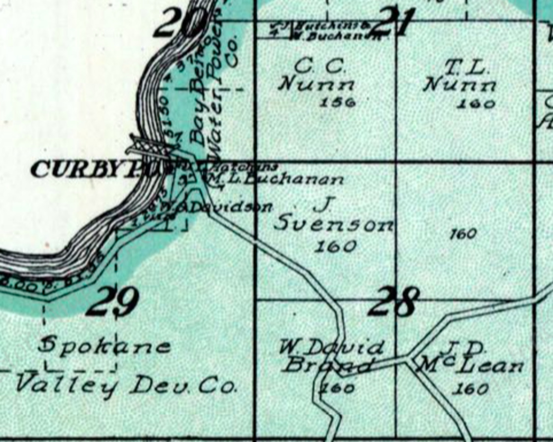 (1912 Spokane County Atlas showing location of Curby Post Office and LaPray Bridge.) |