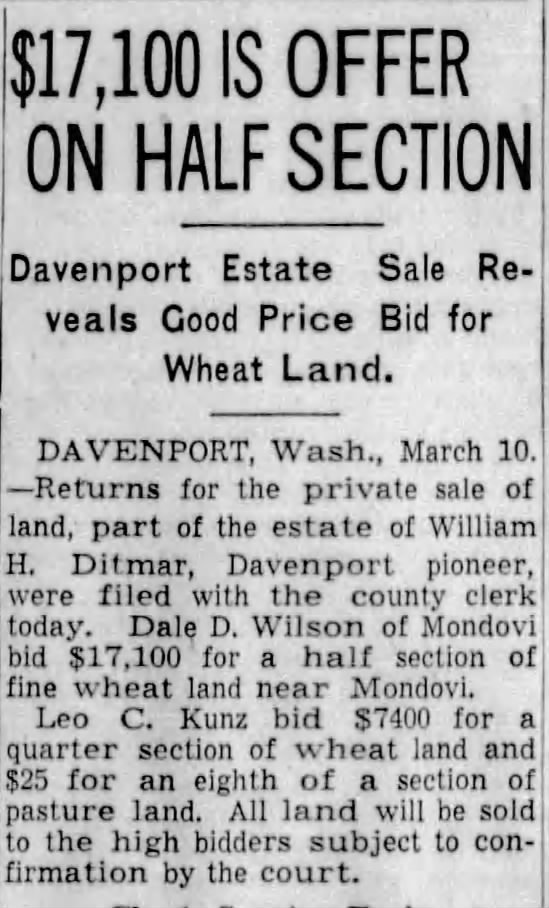 - (download) 1937-03-12-sr-p14-c3-william-ditmar-estate-sale-to-dale-wilson.jpg . . 549 × 908 . . 94 KB . . Kirk . . 04:58, 14 August 2023