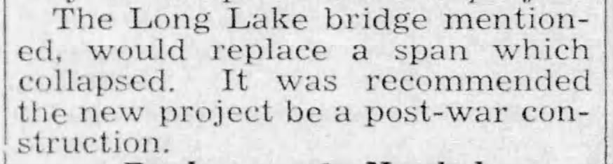 - (download) 1941-05-29-sr-p10-c8-long-lake-bridge-replacement-delayed.jpg . . 594 × 434 . . 45 KB . . Kirk . . 03:48, 14 August 2023
