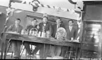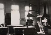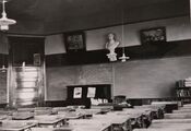 There are several photographs of the stage. Some of these photographs are labeled as being on the second floor the Stevenson building, but they all appear to be the same stage. Reportedly there was a stage in the Stevenson building. Otto Mahrt's graduation ceremonies in 1912 were in the Stevenson building, so that indicates there was some school use of that building. One of the photographs shows roof rafters which indicate it was the gynasium and not the flat roofed Stevenson building.