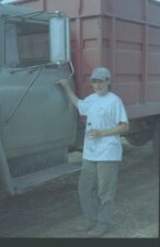 picnic in Davenport Park, political?, harvest shots of a gal by truck and combine