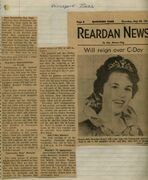 This page is from a scrapbook held by the Reardan Memorial Library about the Reardan Royalty. These are pages from scrapbooks held by the Reardan Memorial Library about the Reardan royalty in 1961.