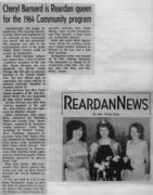 This page is from a scrapbook held by the Reardan Memorial Library about the Reardan Royalty. These are pages from scrapbooks held by the Reardan Memorial Library about the Reardan royalty in 1964.