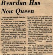 This page is from a scrapbook held by the Reardan Memorial Library about the Reardan Royalty. These are pages from scrapbooks held by the Reardan Memorial Library about the Reardan royalty in 1972.