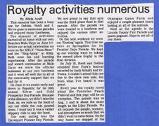 This page is from a scrapbook held by the Reardan Memorial Library about the Reardan Royalty. These are pages from scrapbooks held by the Reardan Memorial Library about the Reardan royalty in 1981.