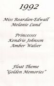 This page is from a scrapbook held by the Reardan Memorial Library about the Reardan Royalty. These are pages from scrapbooks held by the Reardan Memorial Library about the Reardan royalty in 1992.