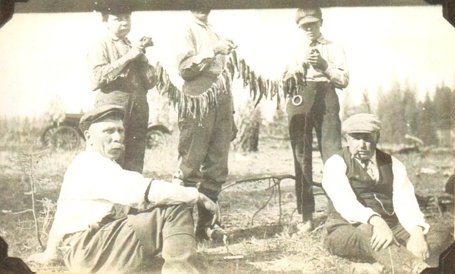 Fishing trip with Peter Tramm, Nelson Raymer, unidentified, Ward Tramm, John Raymer
