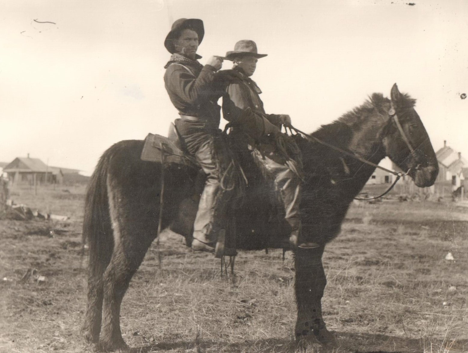 Two men on a horse with gun to head. (Held by the Reardan Memorial Library.)