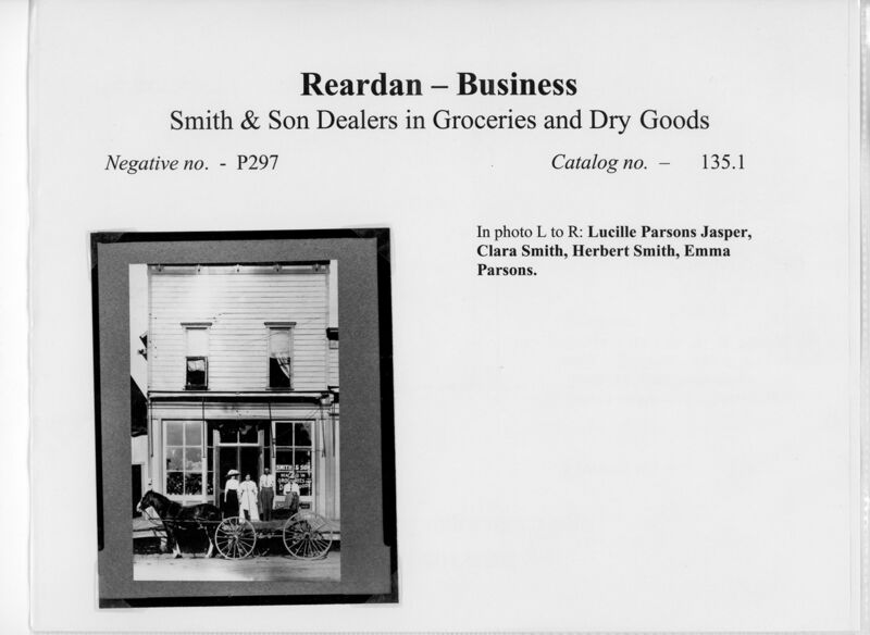 Provenance of Smith and Sons groceries and dry goods. Based on the people identified it is between 1880 and 1900. This appears to the be building just south of the present day community hall. Photo held by the Lincoln County (Washington) Historic Society.