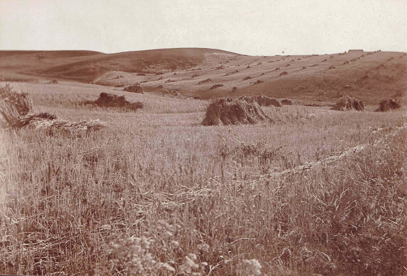 1890 hand shocked wheat. (Photo held by the Reardan Memorial Library.)