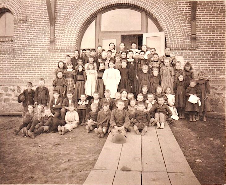 1890-1905 RGS student body, boardwalk centered, boy looks like Herman Wagner.