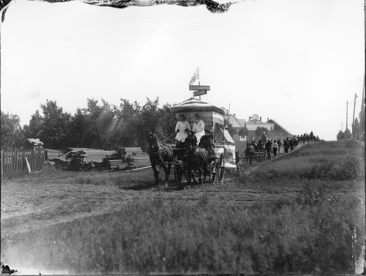 Mule day parade. Clear version of 1904-1910-mule-day-002a-parade.png. (photo from Carol Anderson Paul collection)