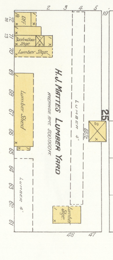 portion of 1905 Sanford Insurance map of south southeast Lake Street