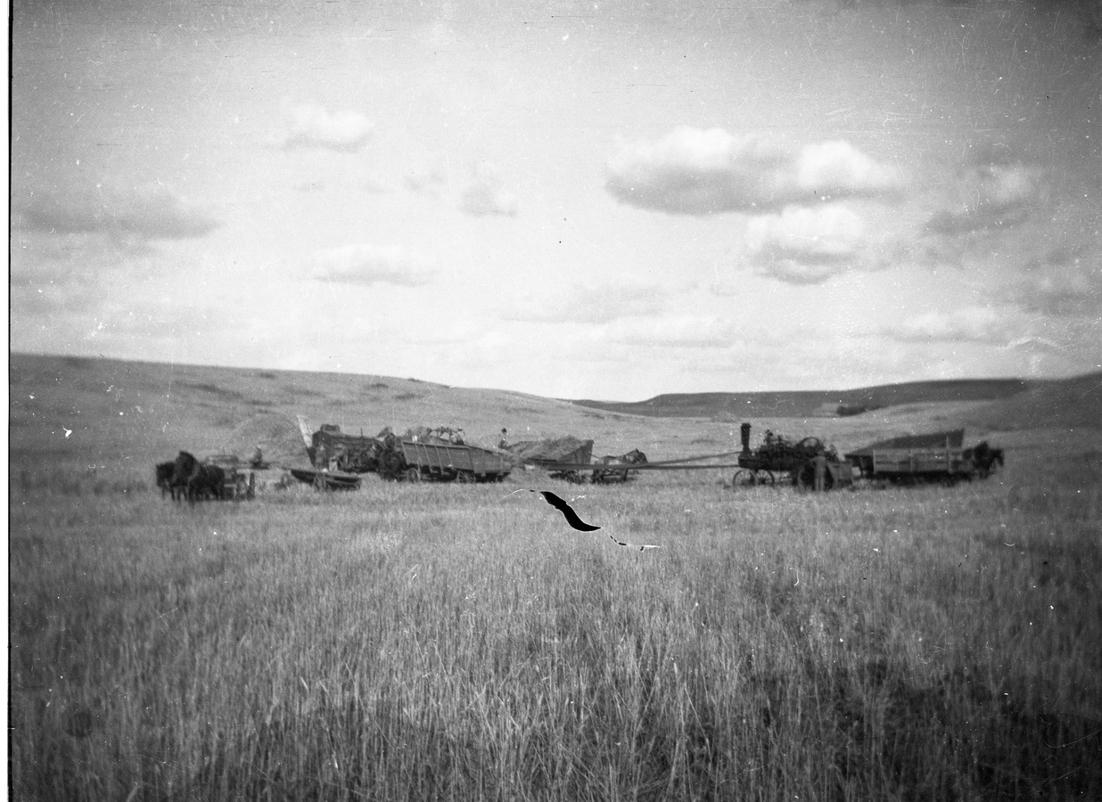 Thresher, steam engine, header boxes (Photo by Otto Mahrt)