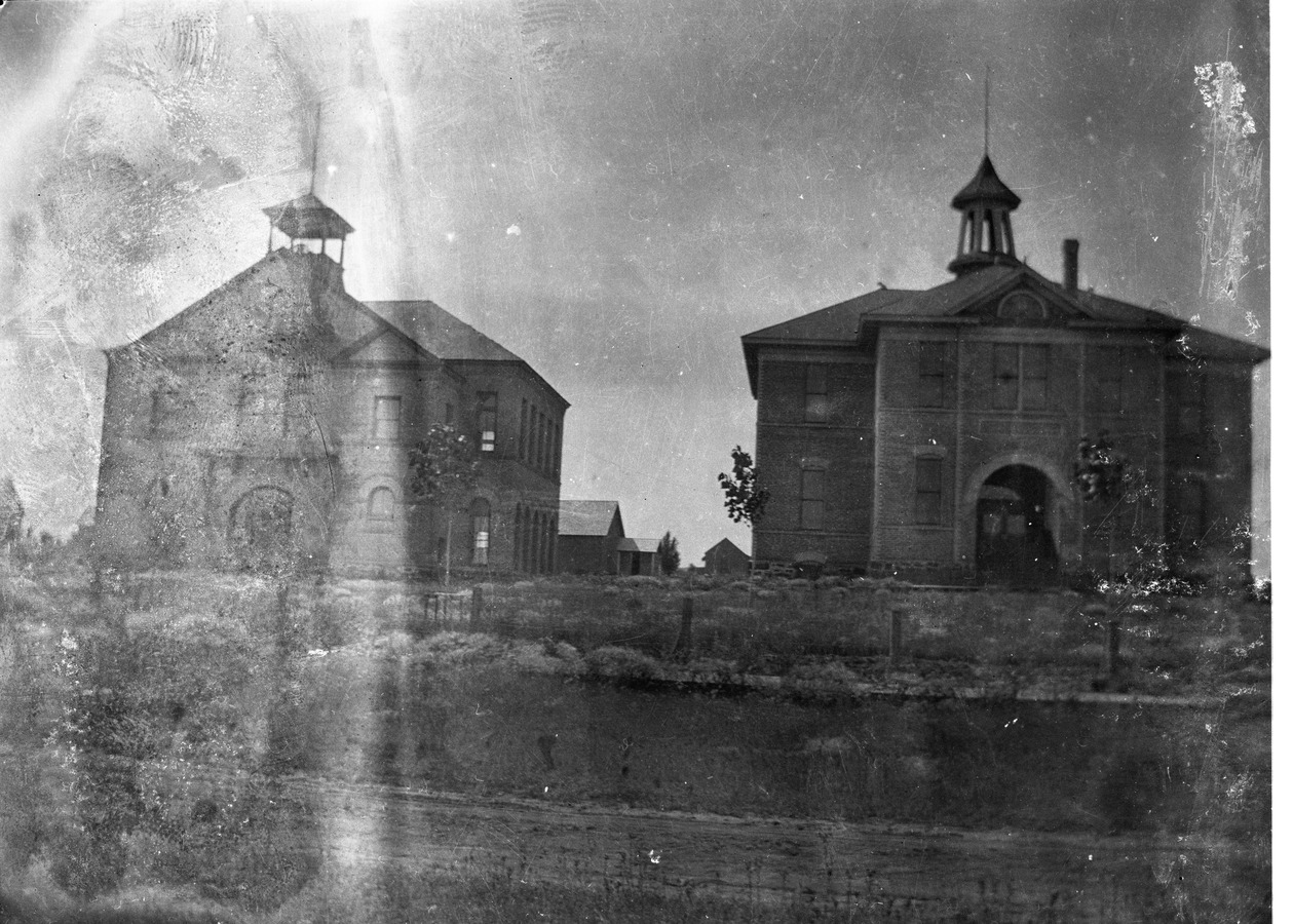 grade school, high school, and wood shed (Photo by Otto Mahrt)