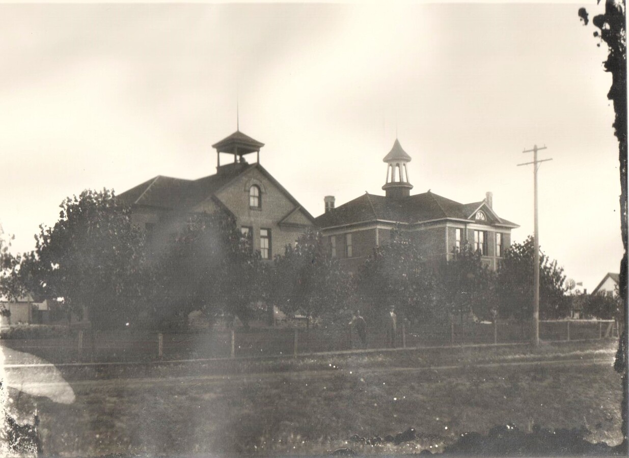 Grade and high school buildings young trees. (Photo held by the Reardan Memorial Library.)