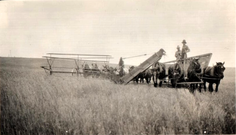 Henrty Mahrt's reaper and header box. (Image held by the Reardan Memorial Library.)
