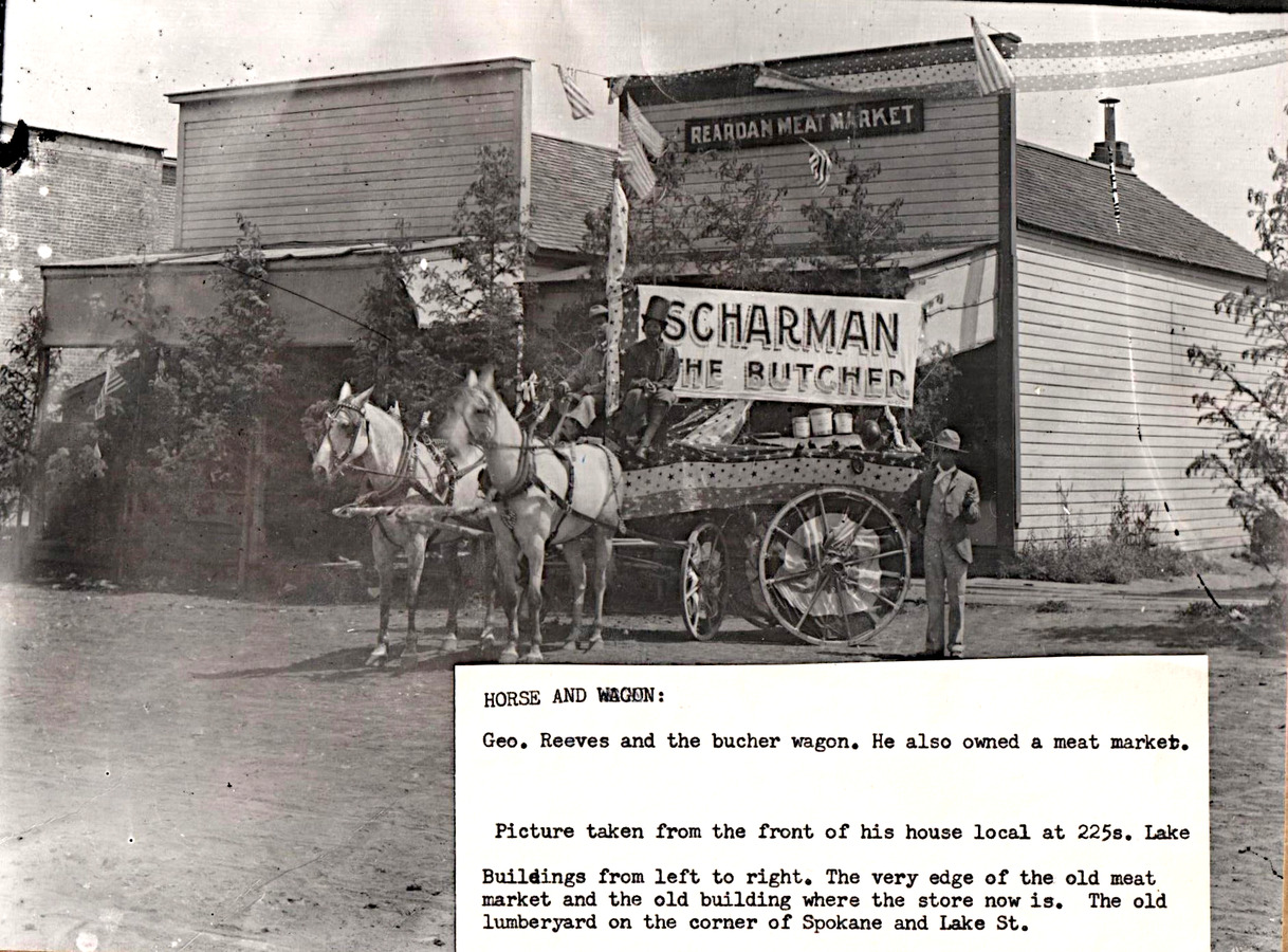 George Reeves on a Scharman butcher wagon. (Held by the Reardan Memorial Library.)