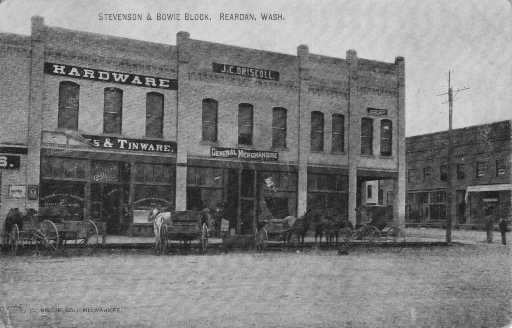 A 1909 postcard of the Stevenson and Bowie Blocks