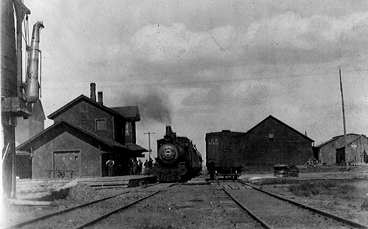 Around 1909 photo of depot, water tank and a couple of elevators. (Held by the Reardan Memorial Library)