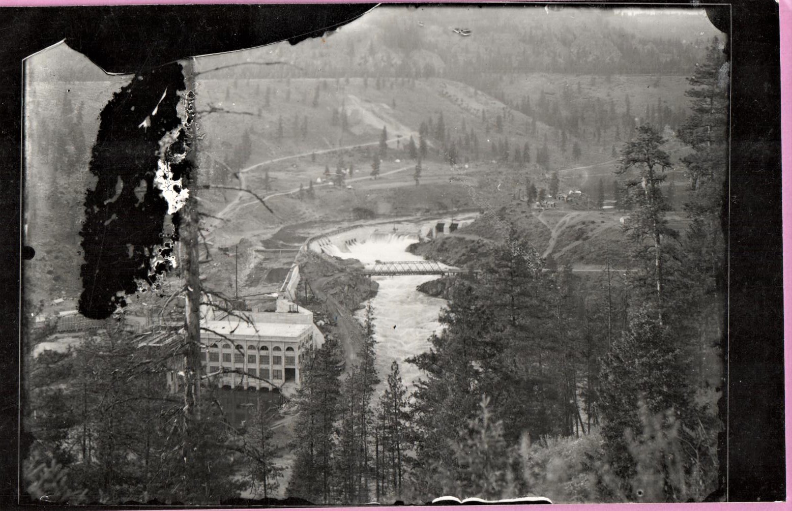 Little Falls Dam with cofferdam in forebay. (Held by the Reardan Memorial Library
