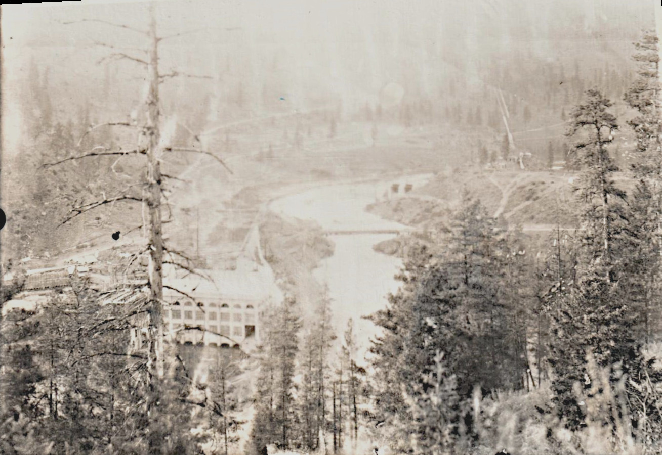 Little Falls Dam with cofferdam in forebay. (Held by the Reardan Memorial Library