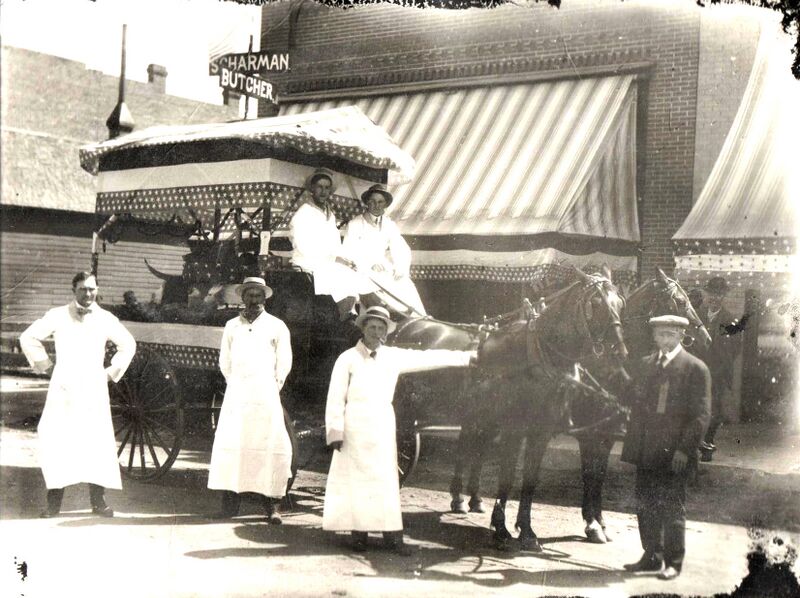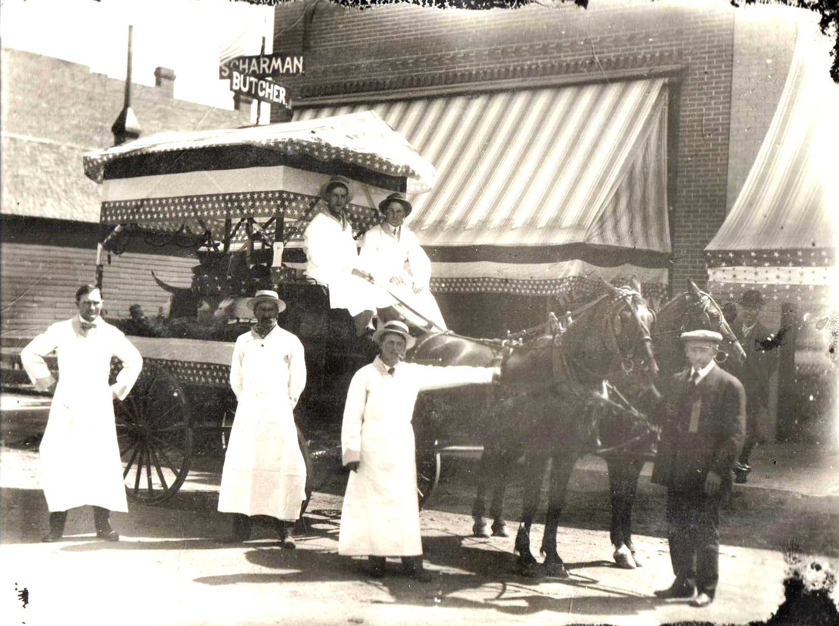 Scharman Meat Market float in front of meat market on Lake Street. (Photo part of the Mule Day collection of the John Mann family held by the Reardan Memorial Library