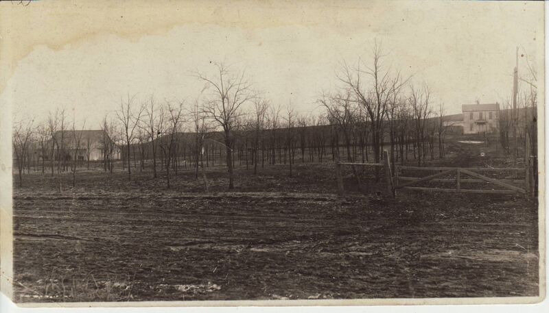 Rice house, barn and timber culture (black locust trees). Photo probably taken around 1910. Photograph part of the Carlson family photograph collection.