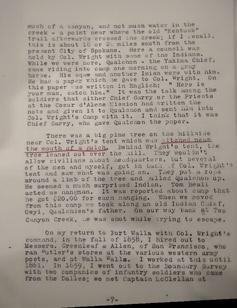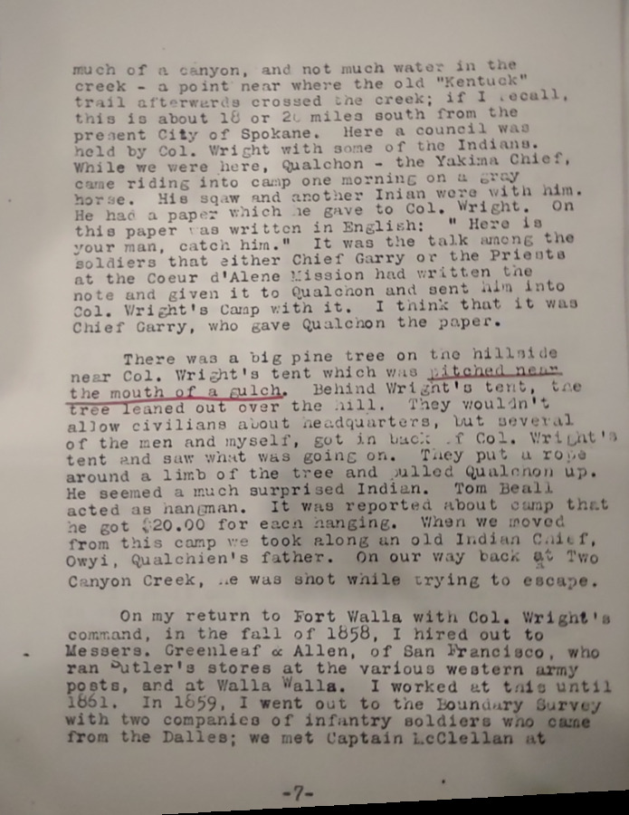Part of the reminisces of John Smith captured by William Lewis, traveling secretary of the Spokane Historic Society. This has been edited and enhanced. (This is held by the Spokane Public Library.)