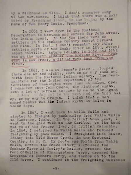 Part of the reminisces of John Smith captured by William Lewis, traveling secretary of the Spokane Historic Society. This has been edited and enhanced. (This is held by the Spokane Public Library.)