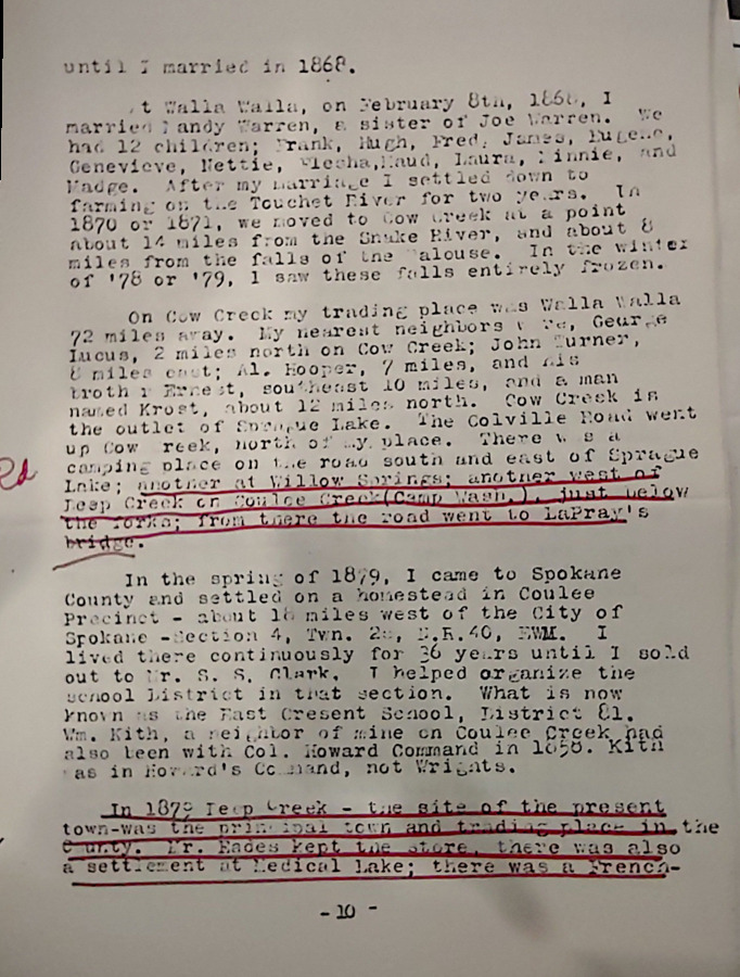 Part of the reminisces of John Smith captured by William Lewis, traveling secretary of the Spokane Historic Society. This has been edited and enhanced. (This is held by the Spokane Public Library.)
