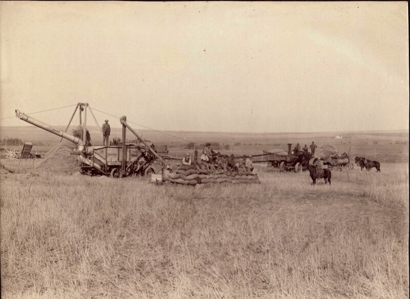 Photo labeled as Plaster threshing, but this looks like it more likely John Mahrt or William Koeller threshing.
