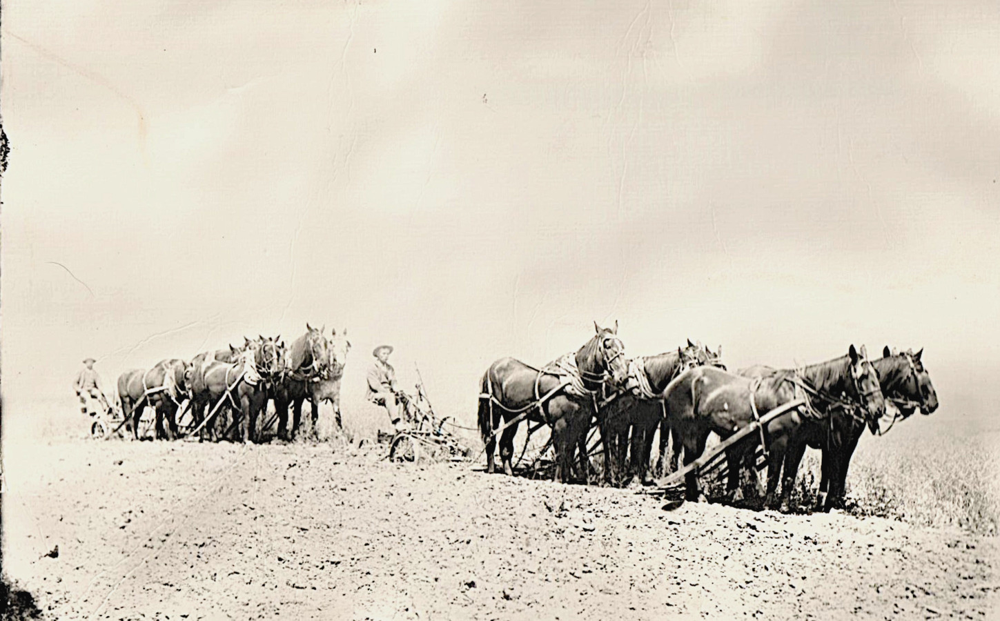 Two six-horse plowing teams (Image held by the Reardan Memorial Library.)