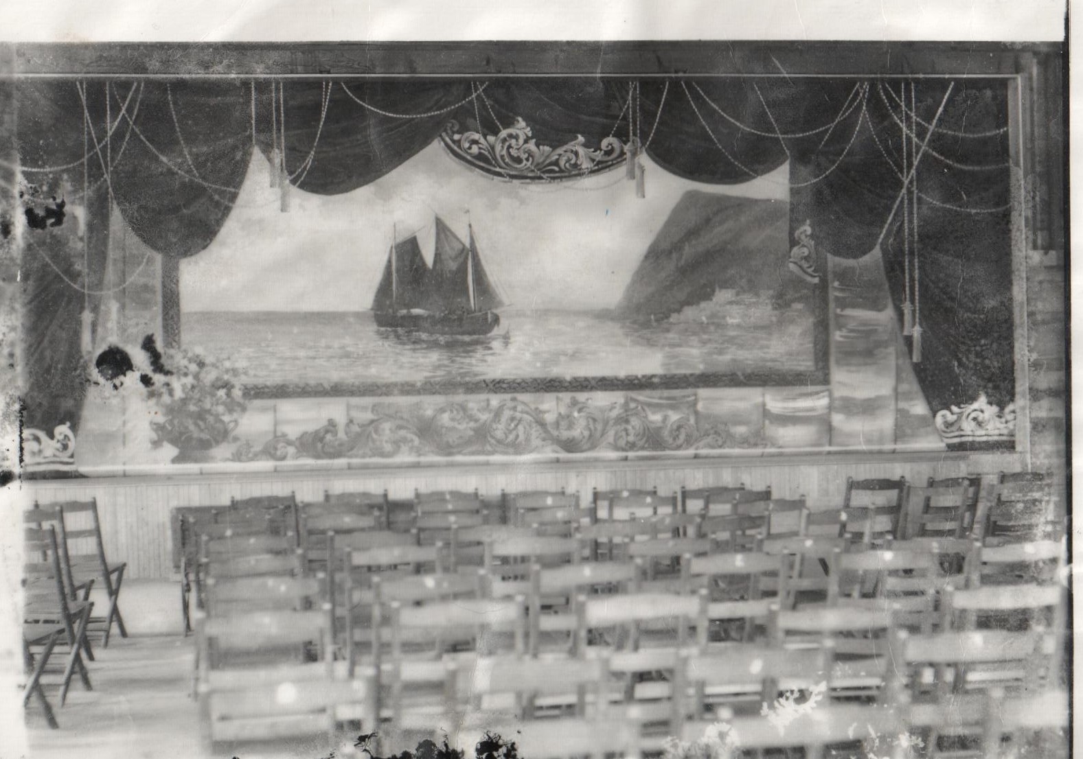 Back of stage is a ship on a sea. (Held by the Reardan Memorial Library)