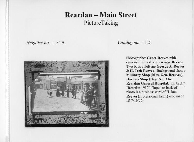 Provenance of Grace Reeves taking photograph on Lake Street west. Photo held by the Lincoln County (Washington) Historic Society.