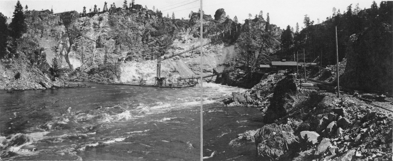 Panorama of rising dam looking east. (Photo probably done for Washington Water Power, now Avista Corporation. Provided by Terry Krupke)