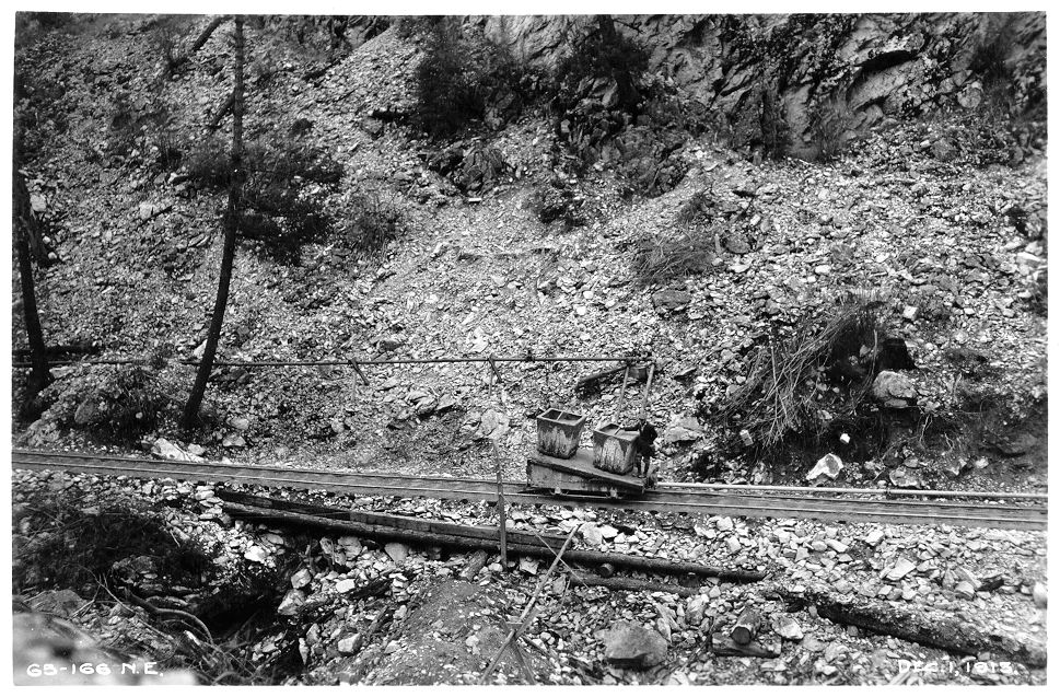 Working in river channel. (Photos by Washington Water Power Company, now Avista and harvested from Big Bend Railroad history [1])