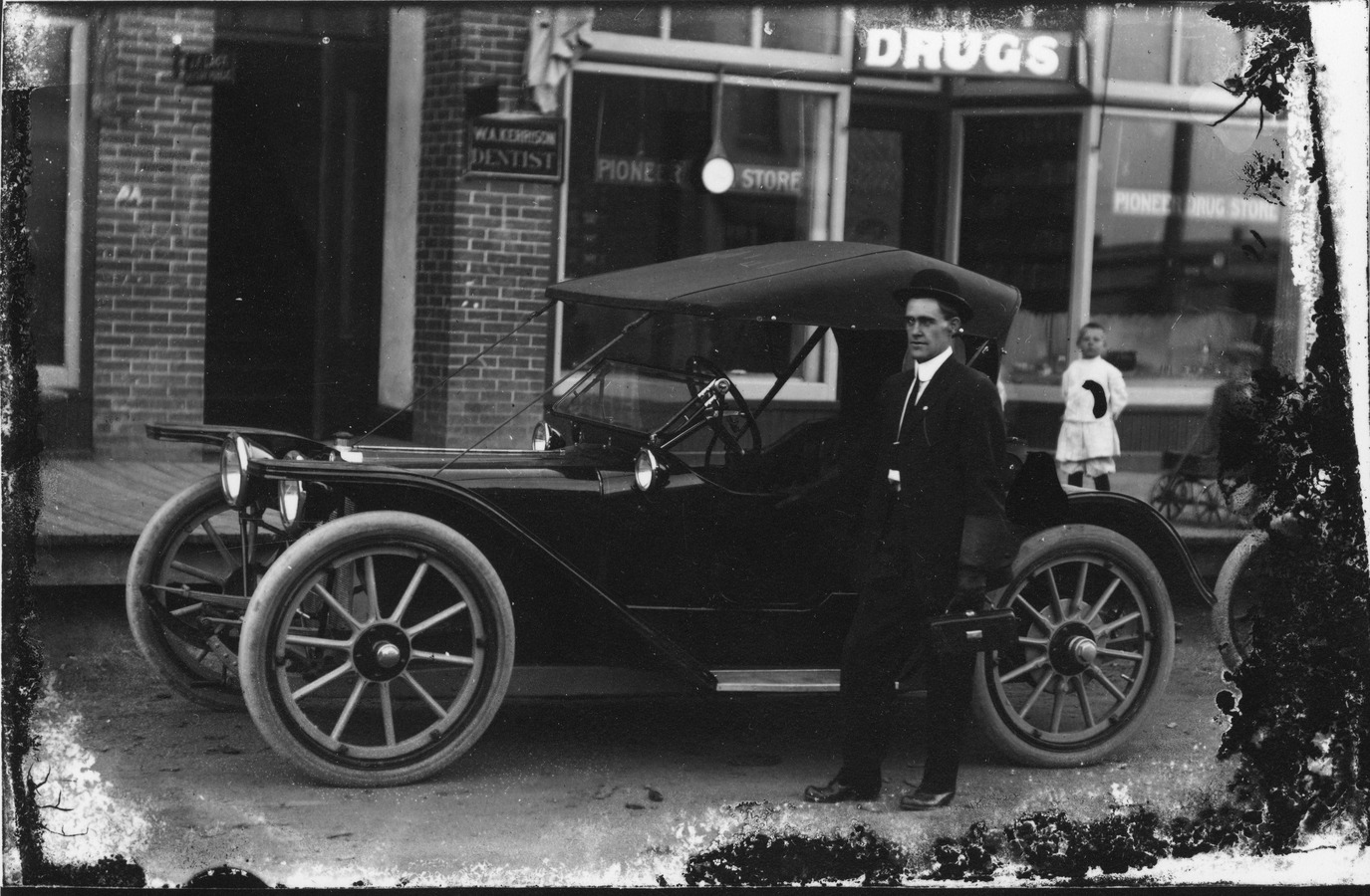 Dr. William Kerrison, dentist in front of Bowie Block. Same as 1913-rml-0208a-dr.william-kerrison-dentist-1600.jpg. (photo from Carol Anderson Paul collection)