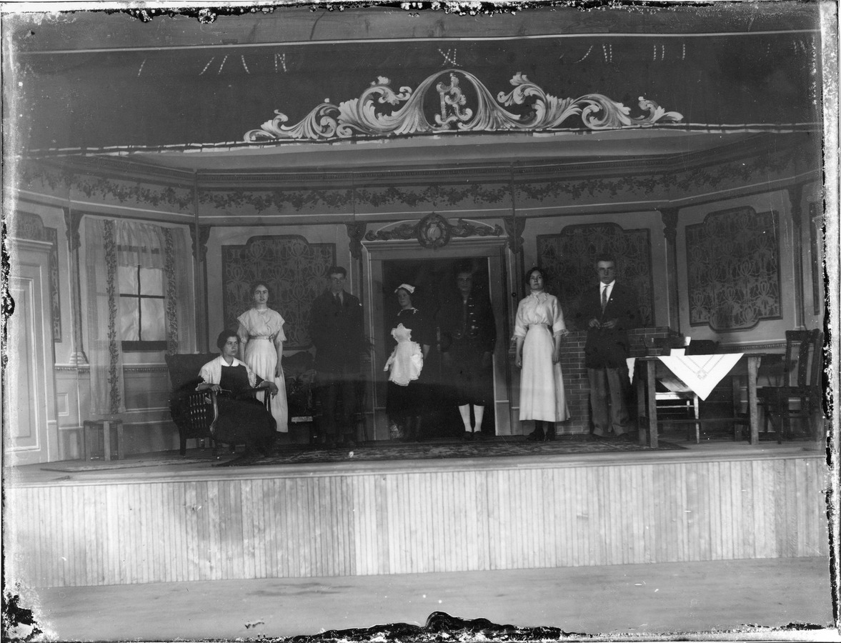 RHS gym stage with scene and cast. Same as 1913-rml-0132-rhs-gym-stage-scene.jpg. (photo from Carol Anderson Paul collection)