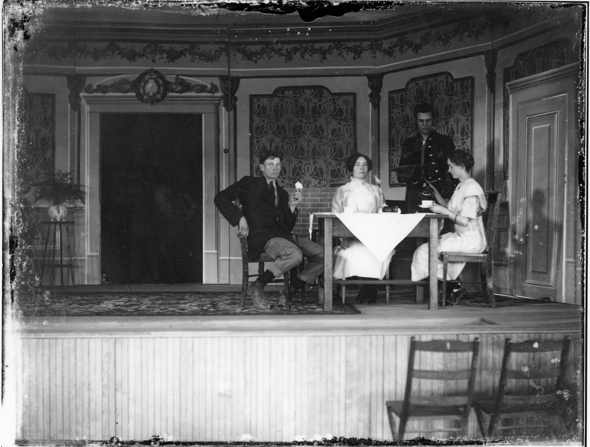 RHS gym stage with scene and cast. Same as 1913-rml-0131-rhs-gym-stage-scene.jpg. (photo from Carol Anderson Paul collection)