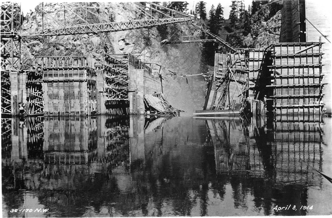 Broken curtain walls from reservoir. (Photo probably done for Washington Water Power, now Avista Corporation. Provided by Terry Krupke)