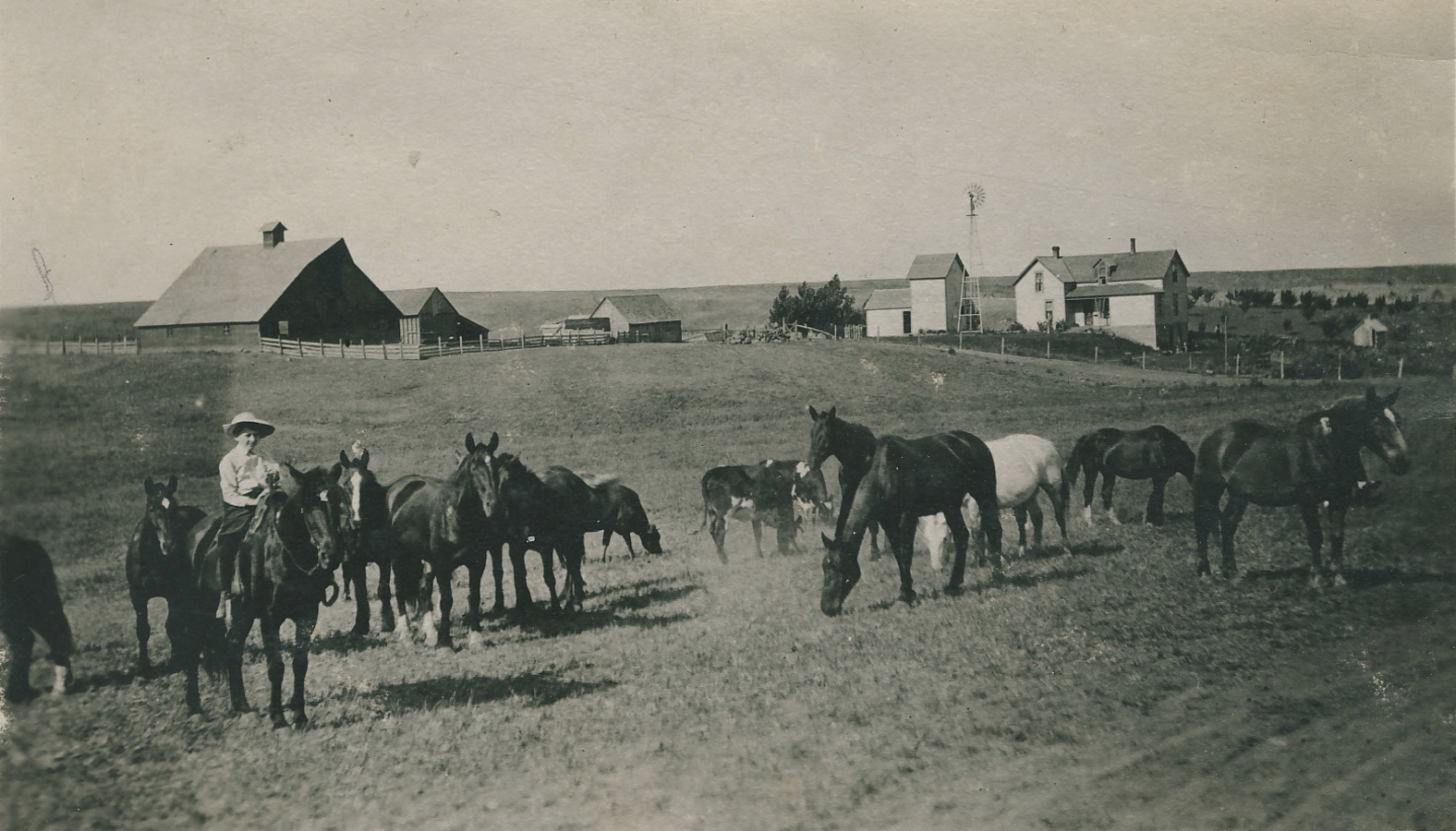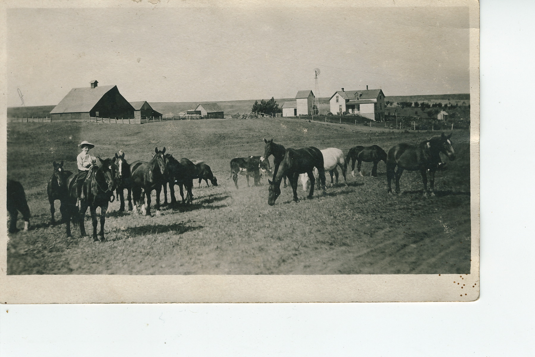 This is the Prince Place on Rice Road. Dating this picture by woman riding horse believed to be Irma Koeller Plaster. The Koellers lived here from 1908 when they moved to Reardan until 1916 when they moved to the Buckman place.