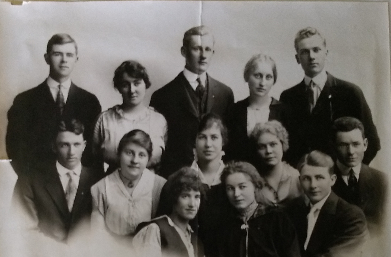 RHS Class of 1915 composite (copy of photo held by RHS) including Meta Wegner Mahrt and Roy Koeller.