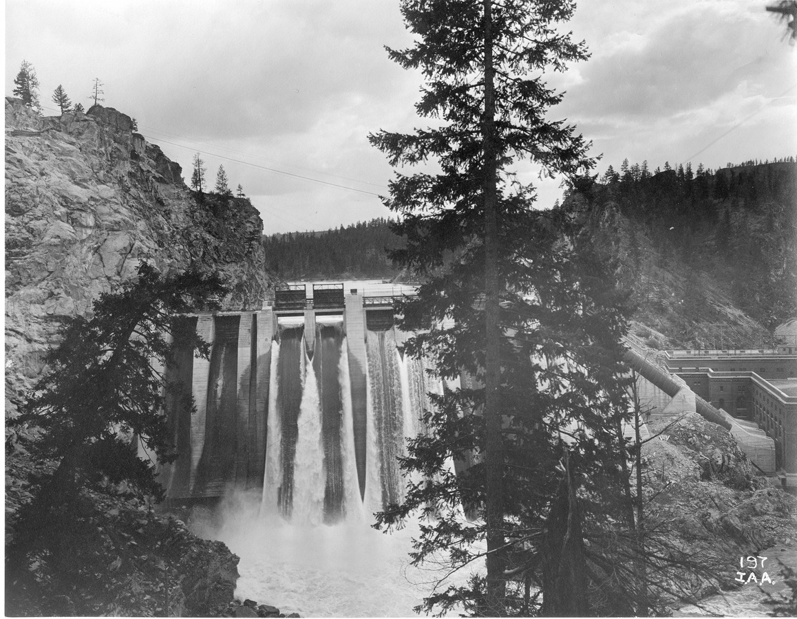 Long Lake dam spillway. Photo by David Guilbert.) (Photo from Spokane Public Library.)