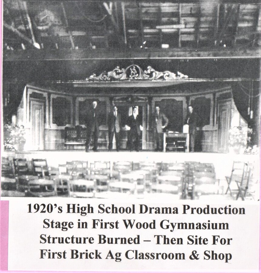 RGS RHS stage in first gym. This photo shows the rafters. (Photo held by the Reardan Memorial Library.)