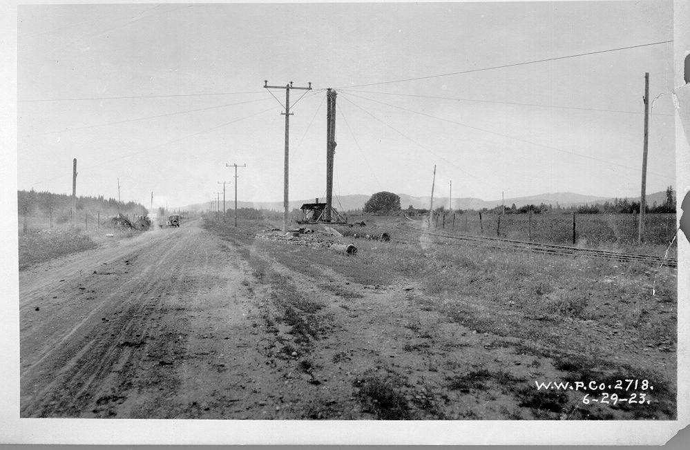 Unloading area at Ford. Road may be the modern WA-231. (Photos by Washington Water Power Company, now Avista and harvested from Big Bend Railroad history [1])