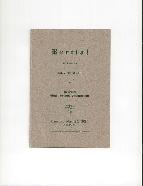 Invitation to a piano recital. (Part of the collection held by the Reardan Memorial Library)