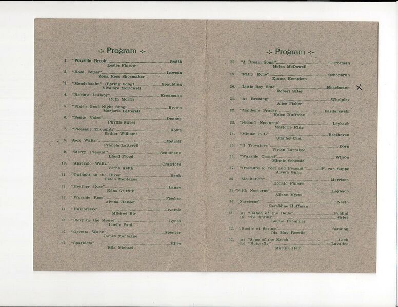 Invitation to a piano recital. (Part of the collection held by the Reardan Memorial Library)
