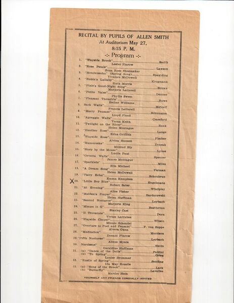 Invitation to a piano recital. (Part of the collection held by the Reardan Memorial Library)