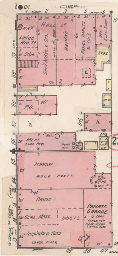 portion of 1930 Sanford Insurance map of southeast Lake Street